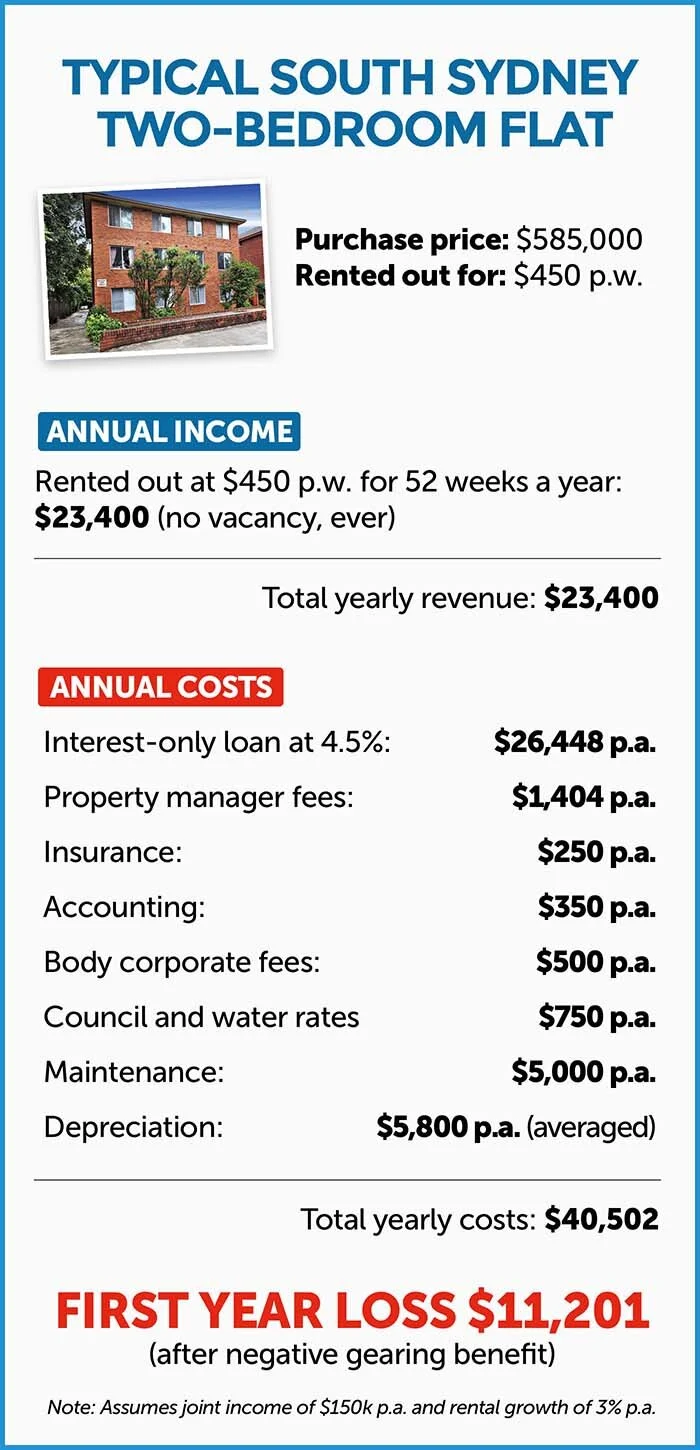 Then, even if we factor in healthy renting increases and an unlikely 100 per cent tenancy -- over the next 20 years they’ll lose $237,900 (see box).